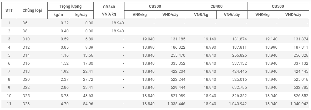 Giá thép xây dựng hôm nay tại thị trường trong nước